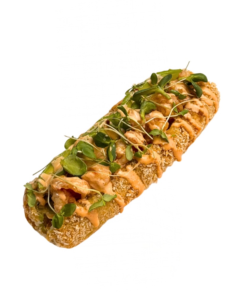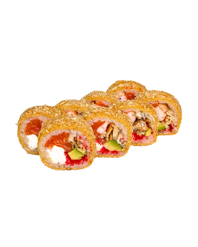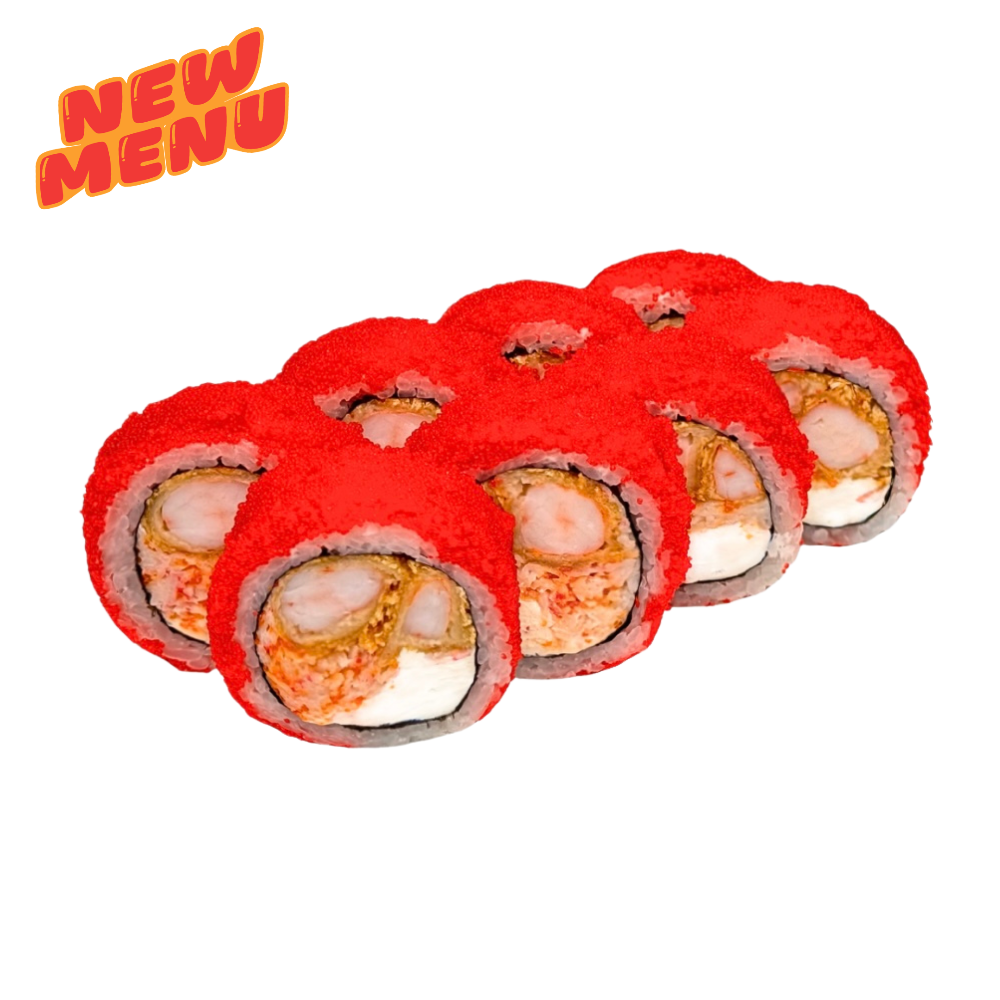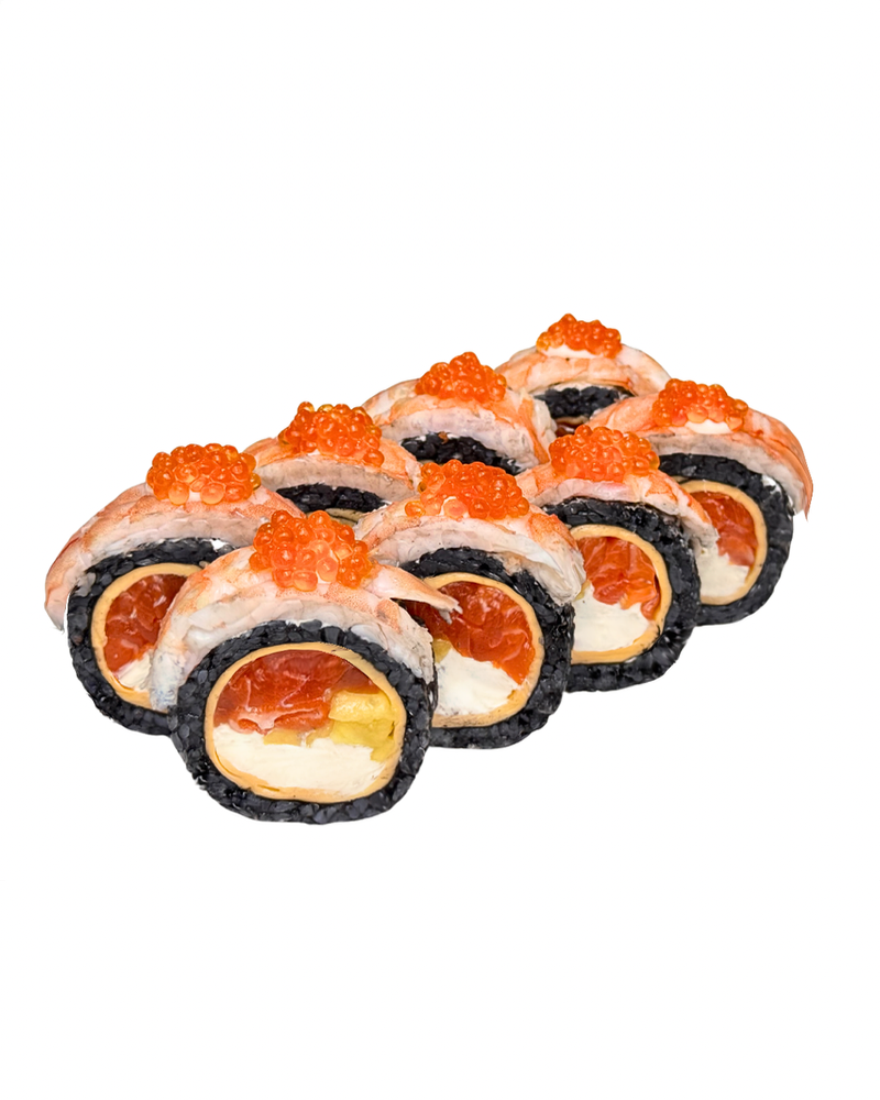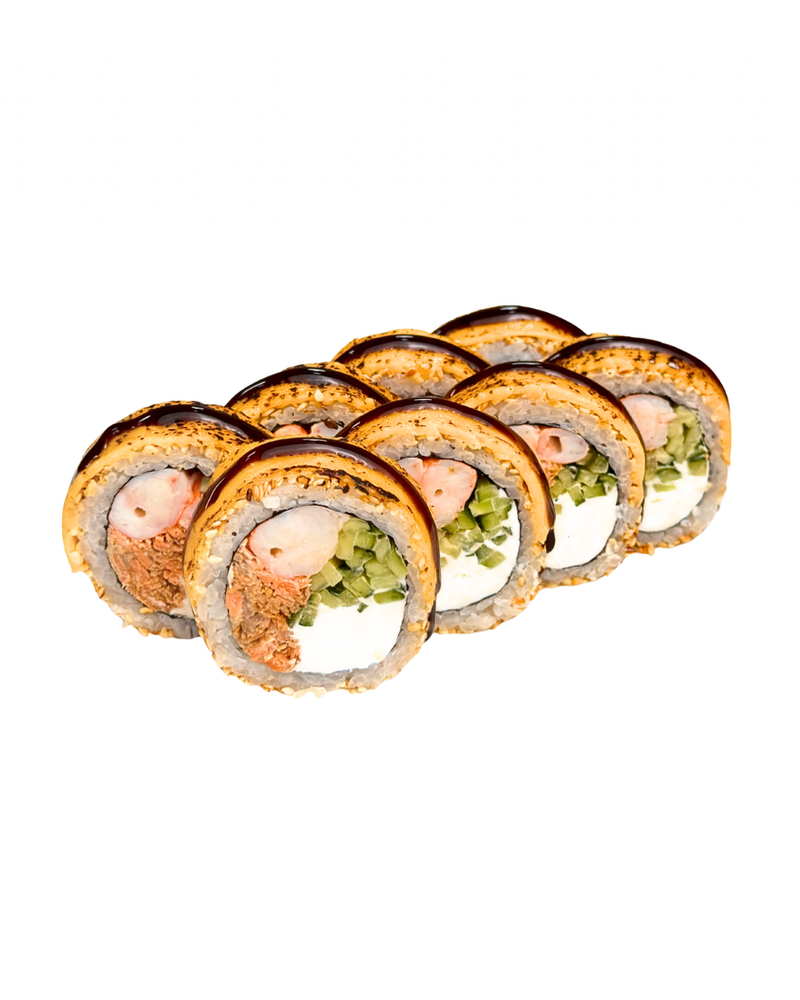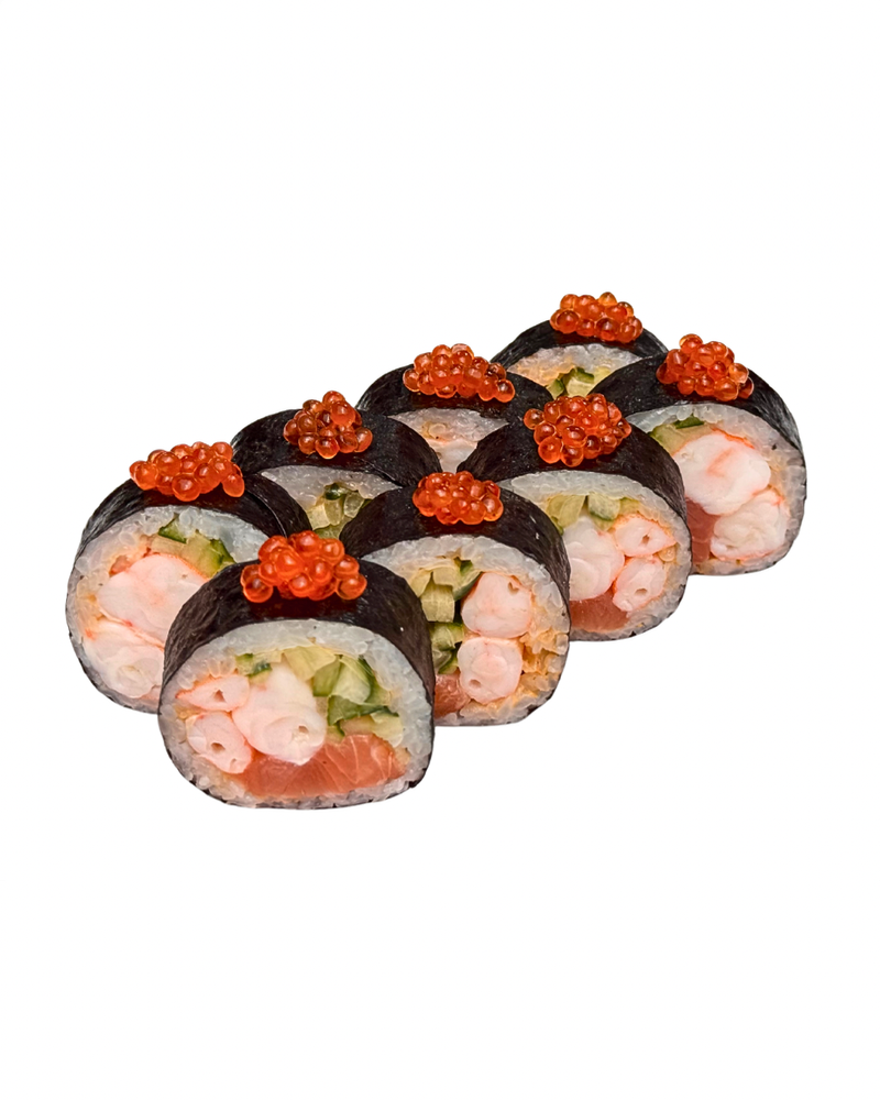 Спекотний ТокіоРис, вершковий сир, огірок, лосось, креветка, ікра тобіко