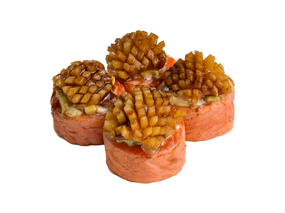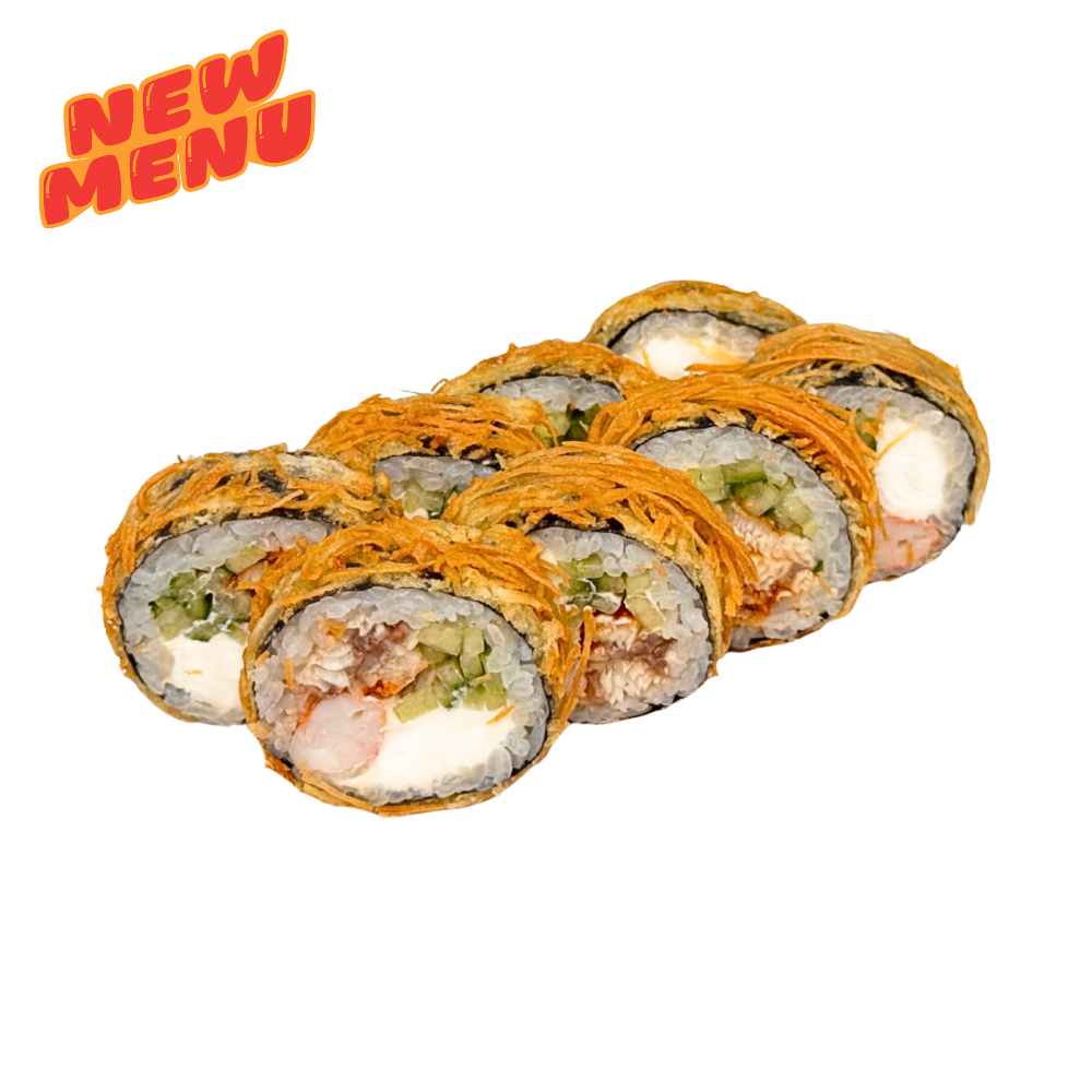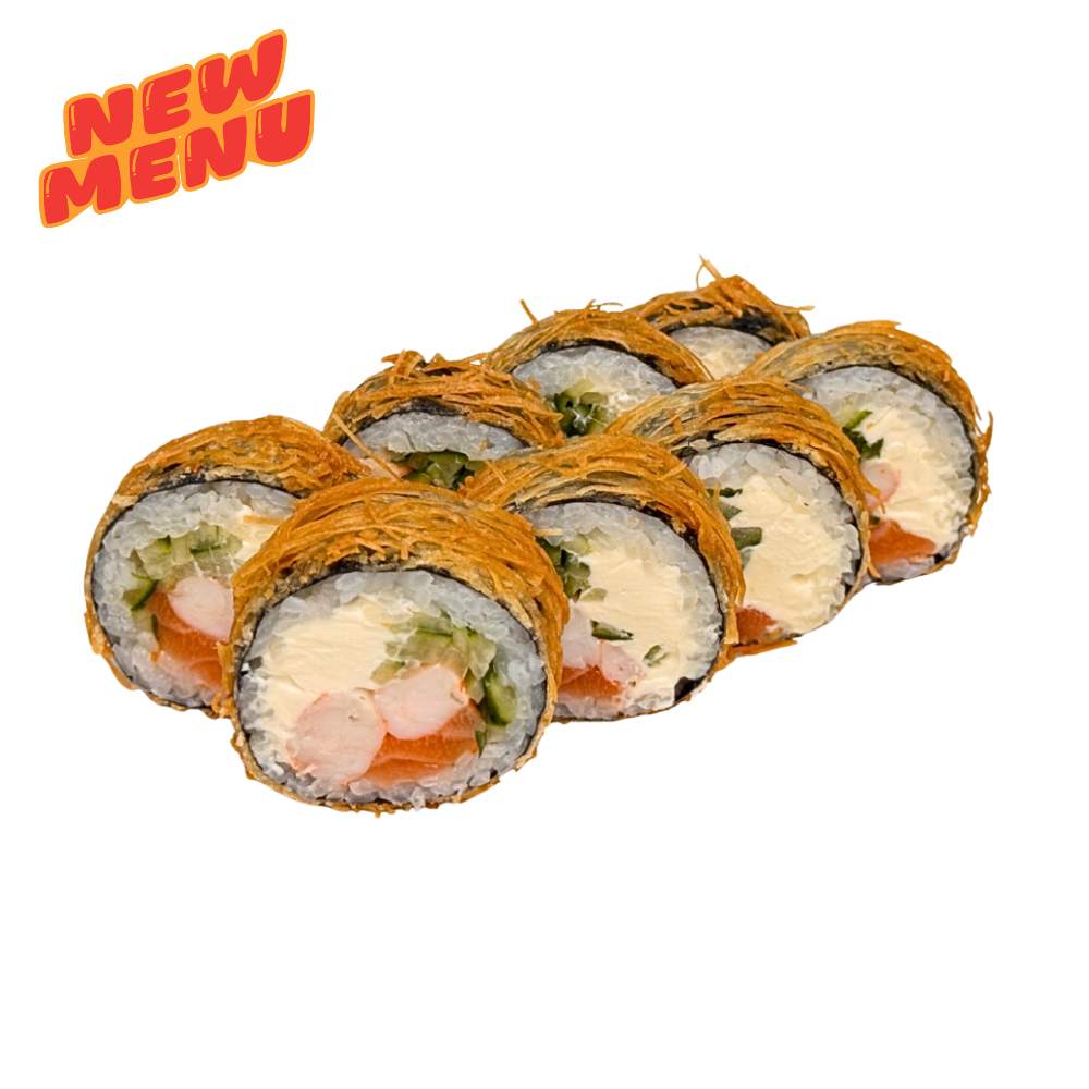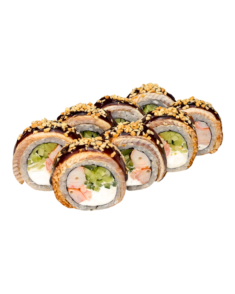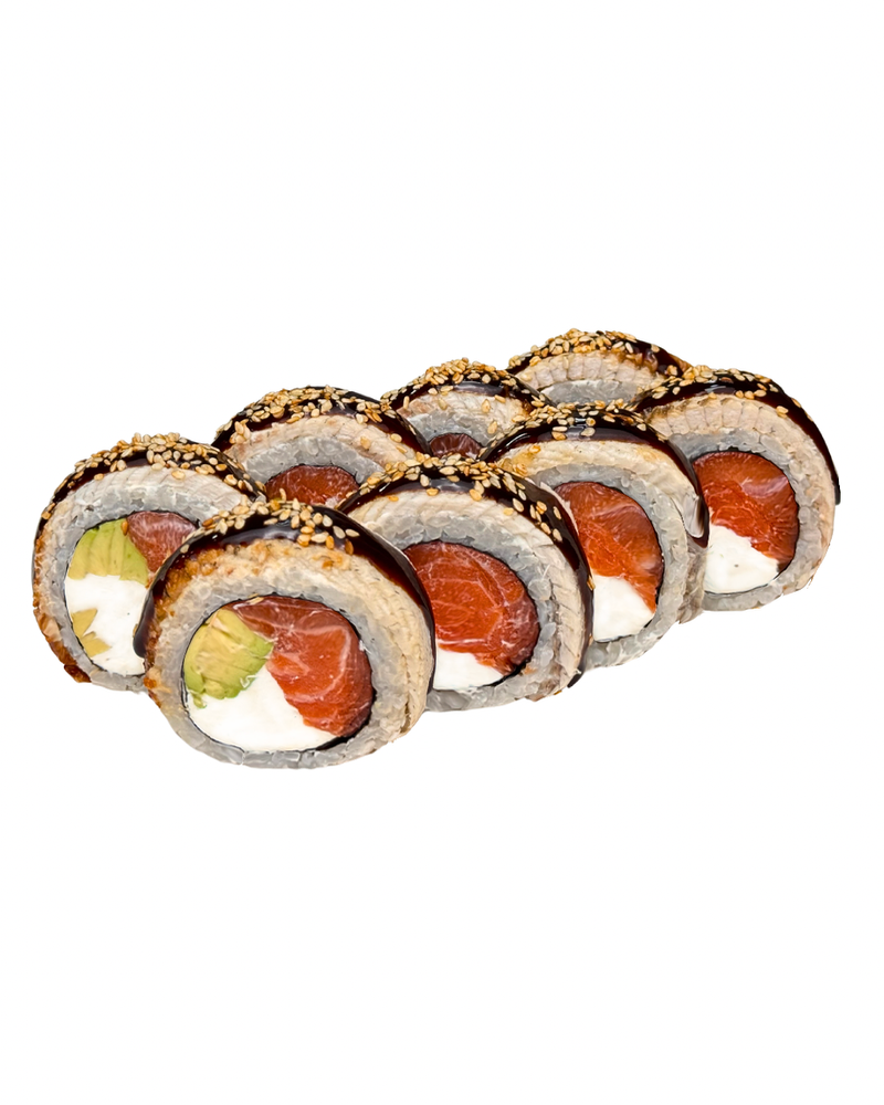 Такаші Рис, вершковий сир, огірок, креветка темпура, лосось обпалений, унагі, фісташка