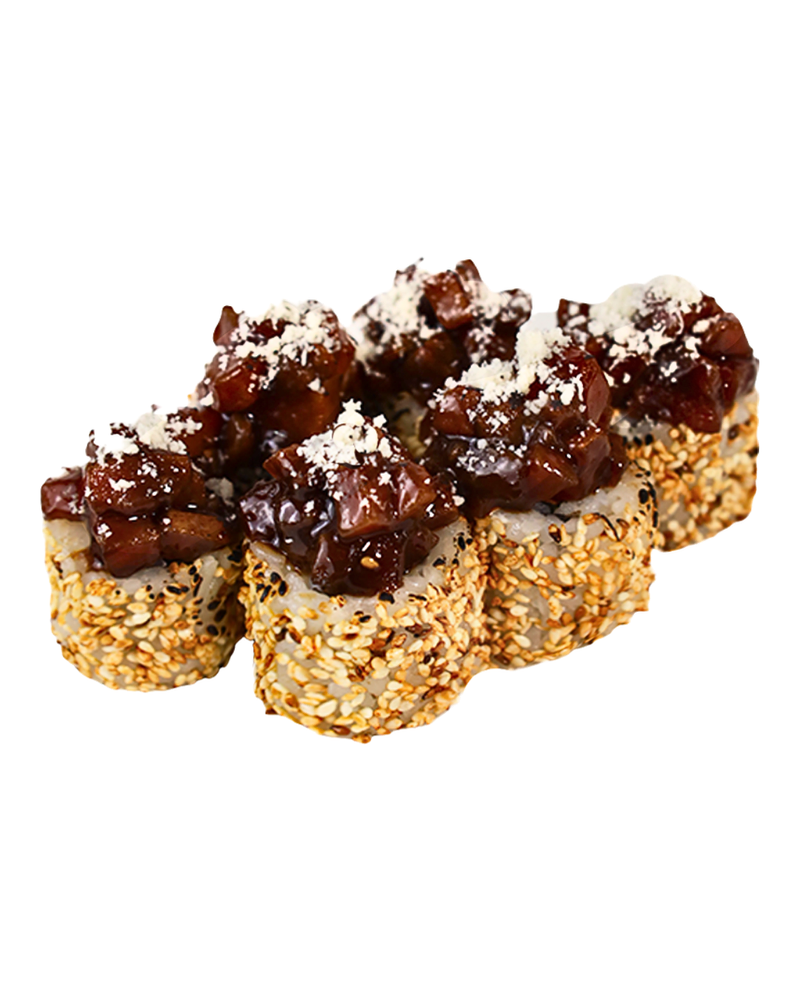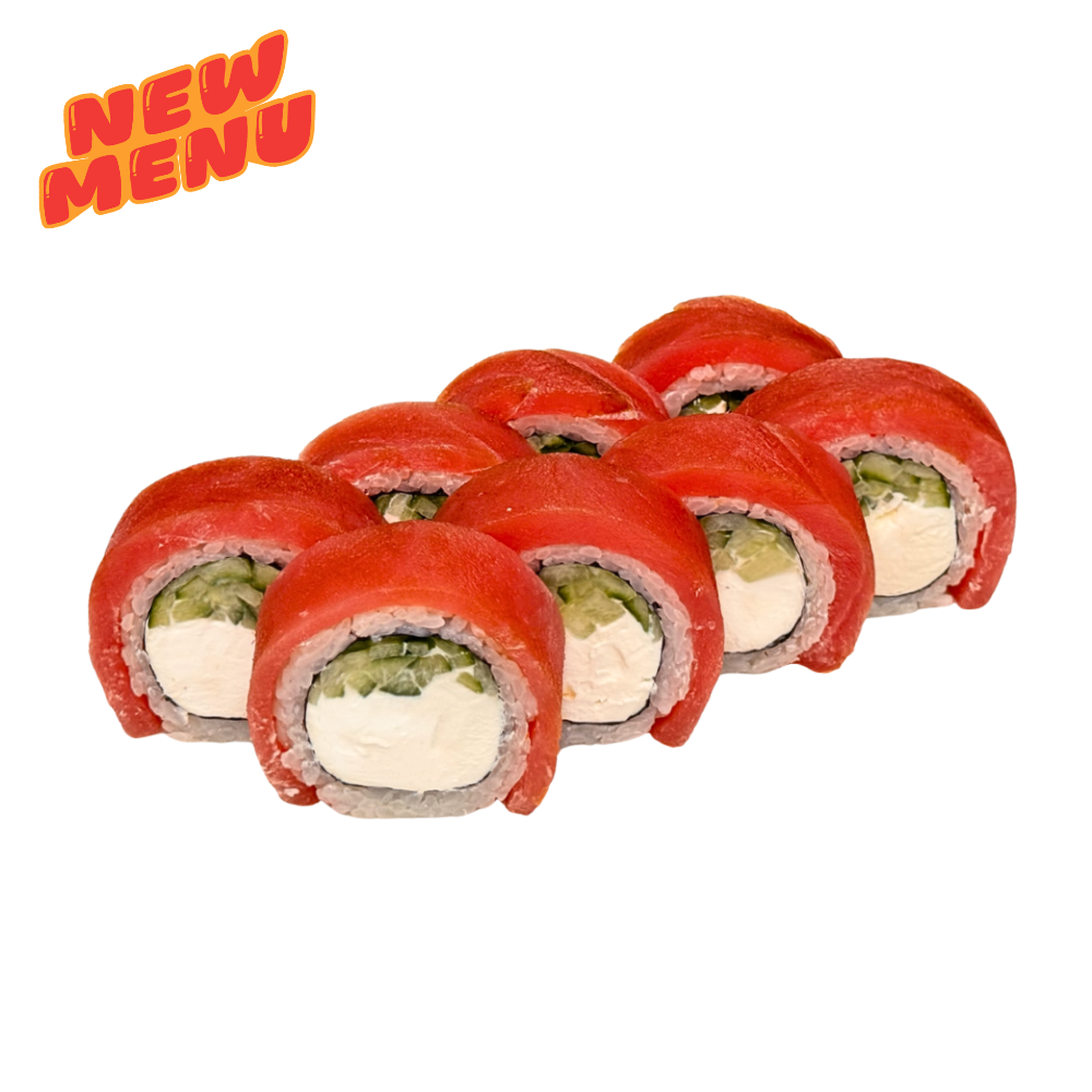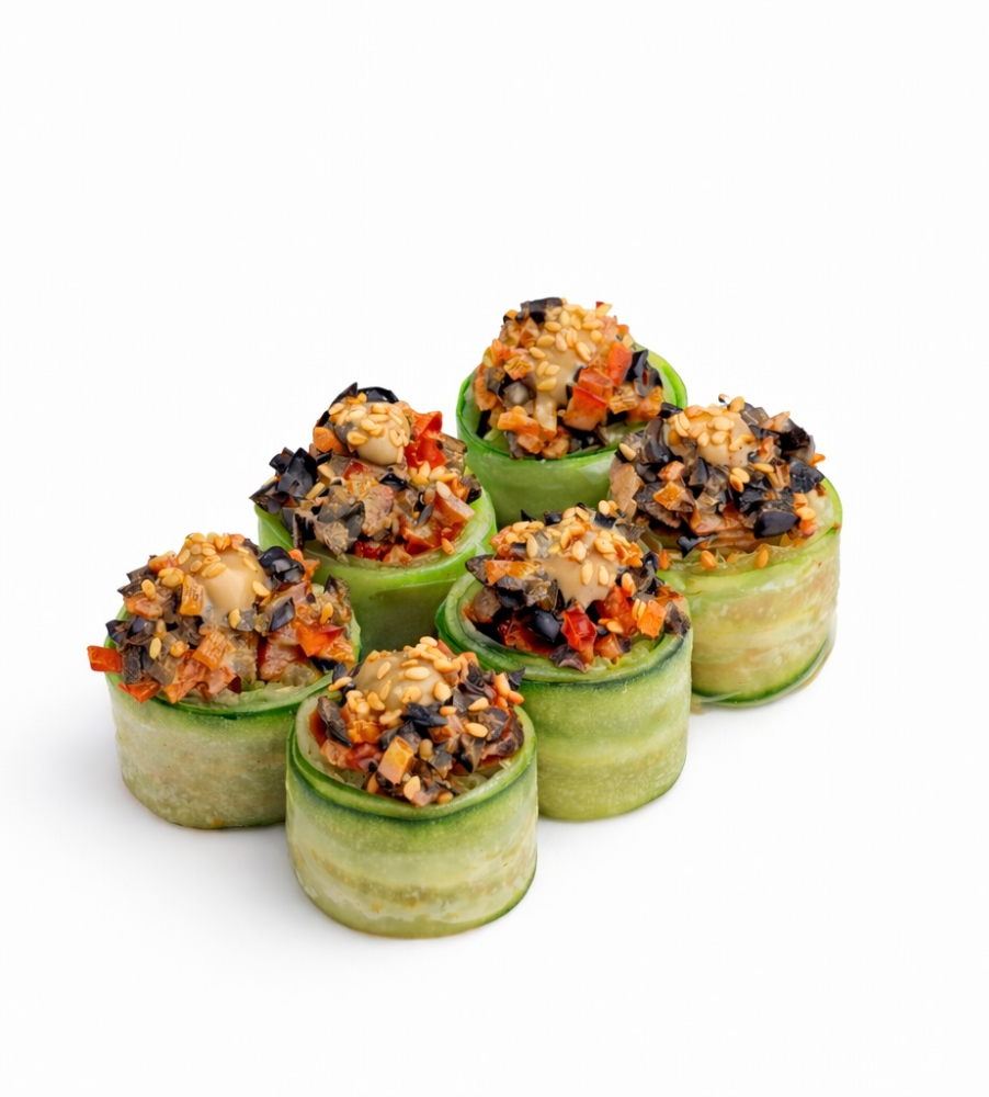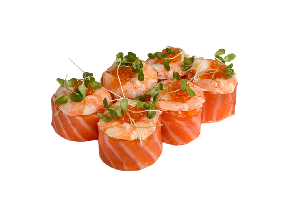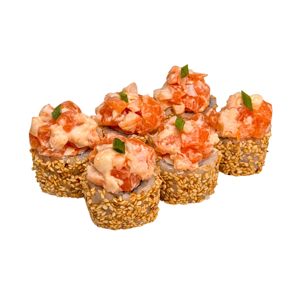 Такаші Рис, вершковий сир, огірок, креветка темпура, лосось обпалений, унагі, фісташка